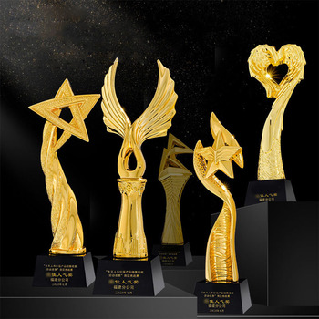 Oro lucido di vendita caldo, trofeo stella in resina su Base di cristallo nero con Logo inciso individualmente/